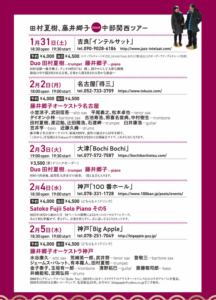 藤井郷子ライブスケジュール(今後の日程はこちら)